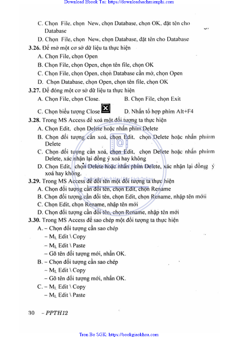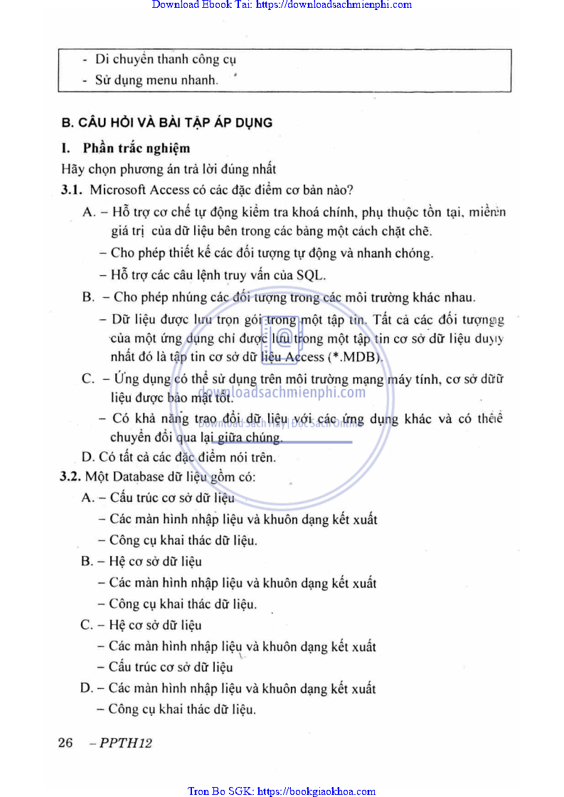- ĐÁP ÁN VÀ HƯỚNG DẪN GIẢI CHƯƠNG 1. KHÁI NIỆM VỀ CƠ SỞ DỮ LIỆU VÀ HỆ QUẢN TRỊ CƠ SỞ DỮ LIỆU