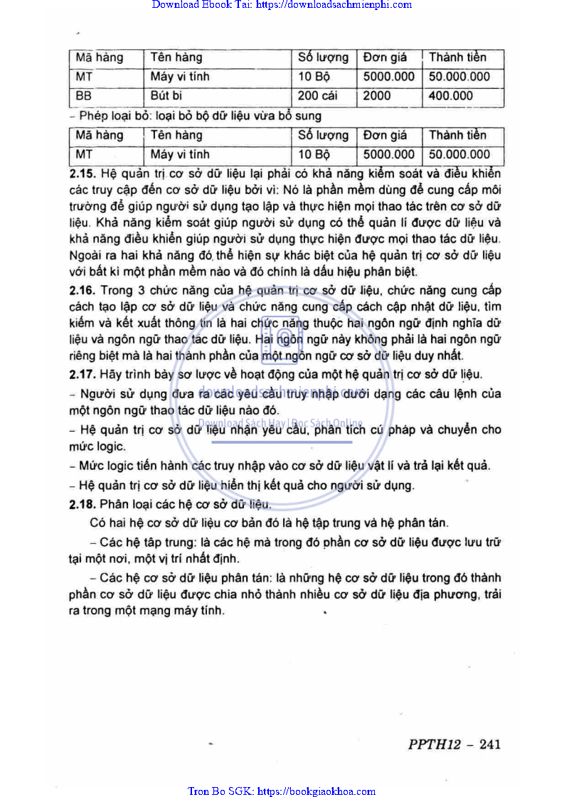 - ĐÁP ÁN VÀ HƯỚNG DẪN GIẢI CHƯƠNG 1. KHÁI NIỆM VỀ CƠ SỞ DỮ LIỆU VÀ HỆ QUẢN TRỊ CƠ SỞ DỮ LIỆU