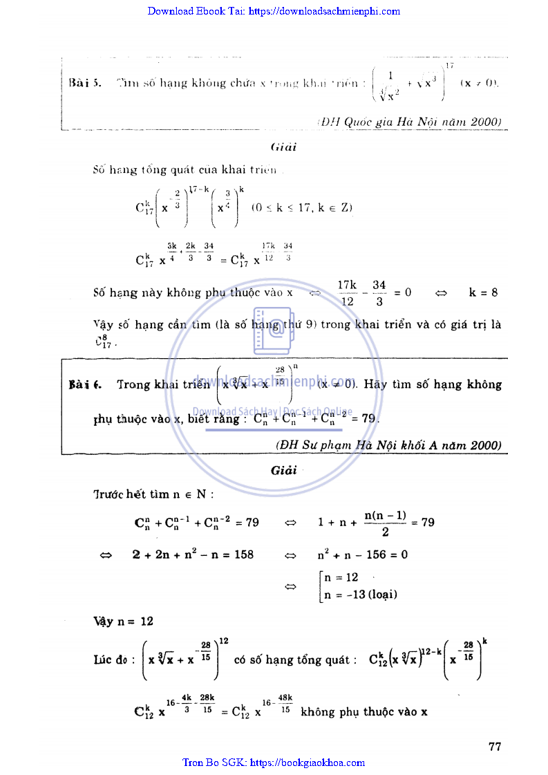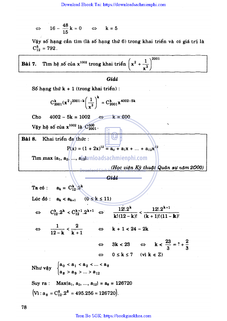 Phương Pháp Giải Toán Đại Số Tổ Hợp 12 – Võ Giang Giai