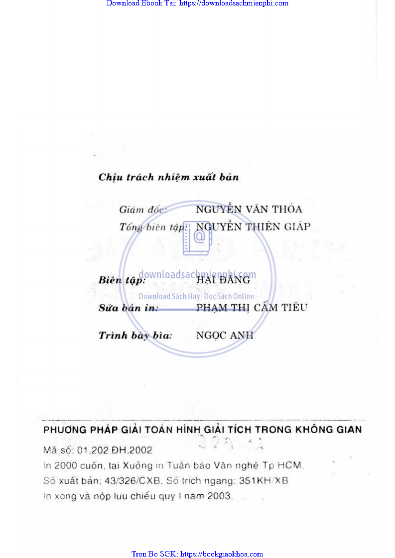 Phương Pháp Giải Toán Trắc Nghiệm Hình Học Giải Tích – Trần Bá Hà