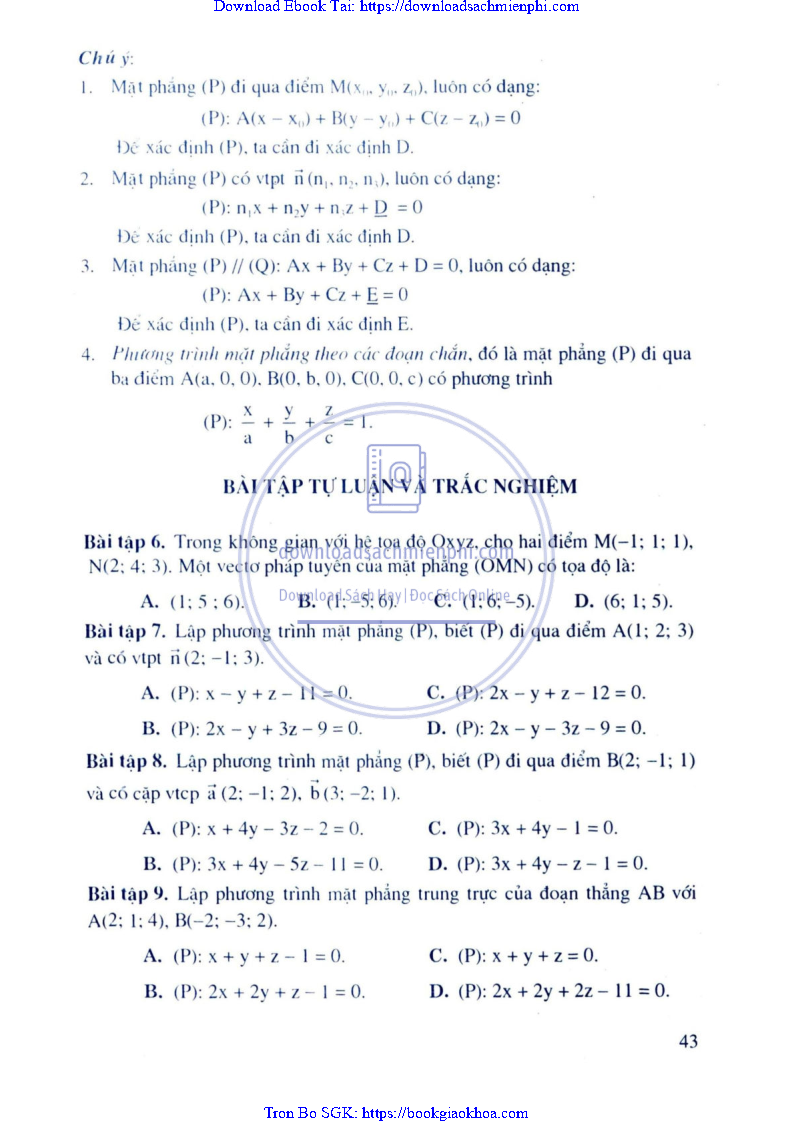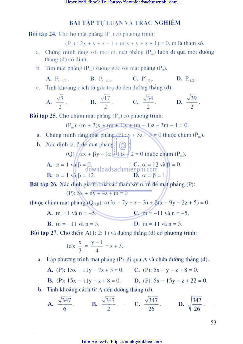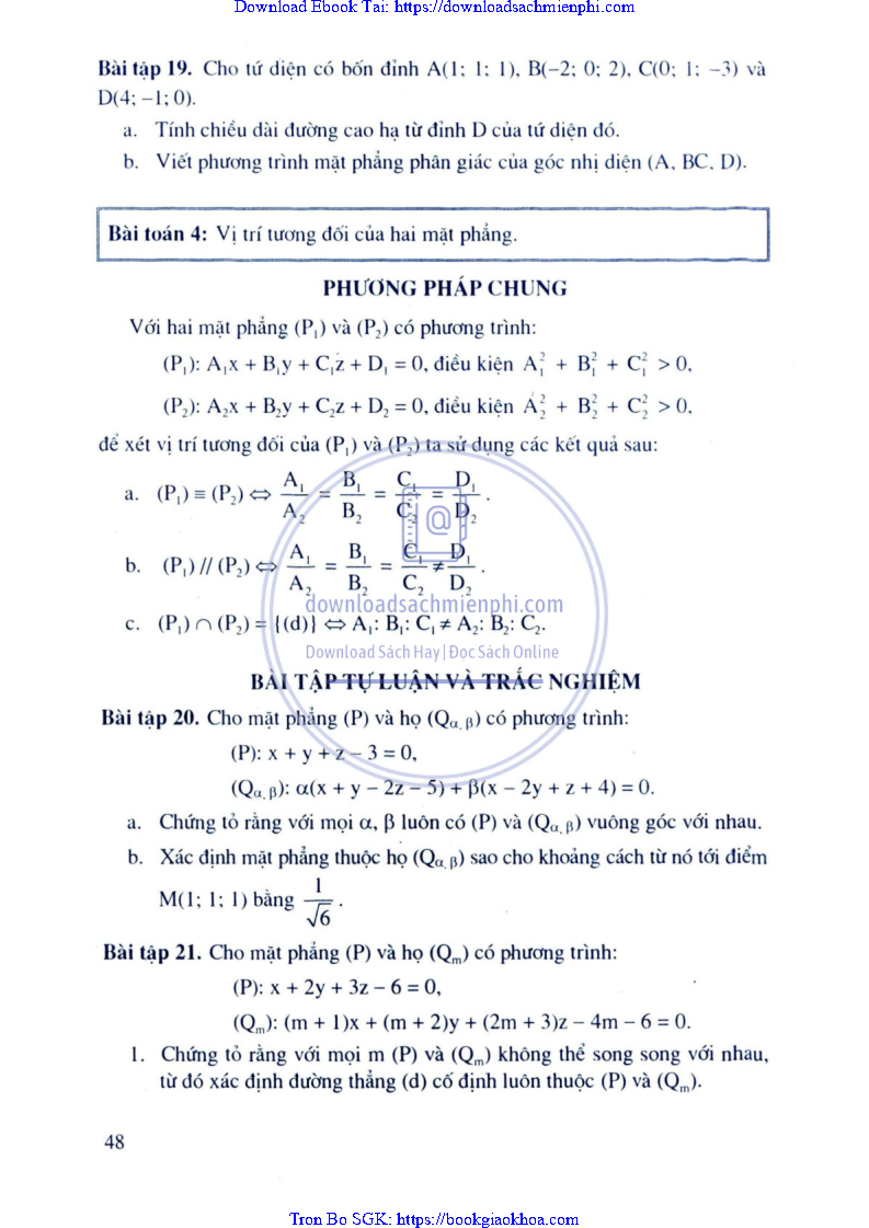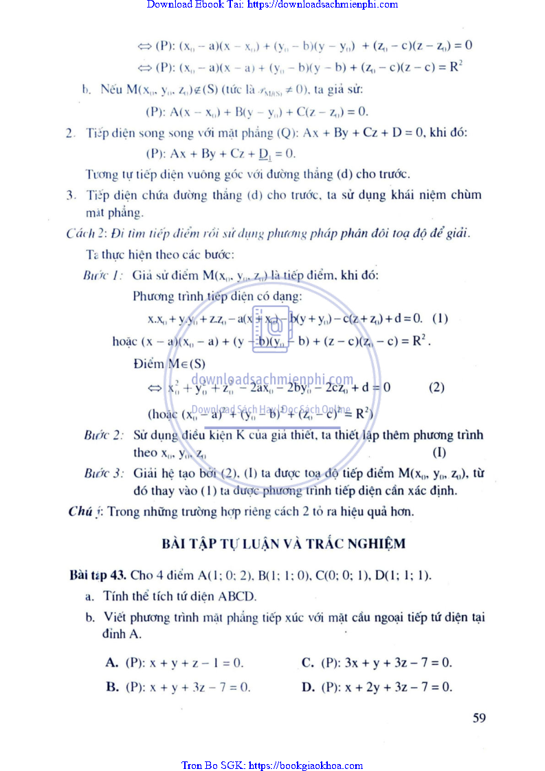 Phương Pháp Giải Toán Trắc Nghiệm Hình Học Giải Tích – Trần Bá Hà