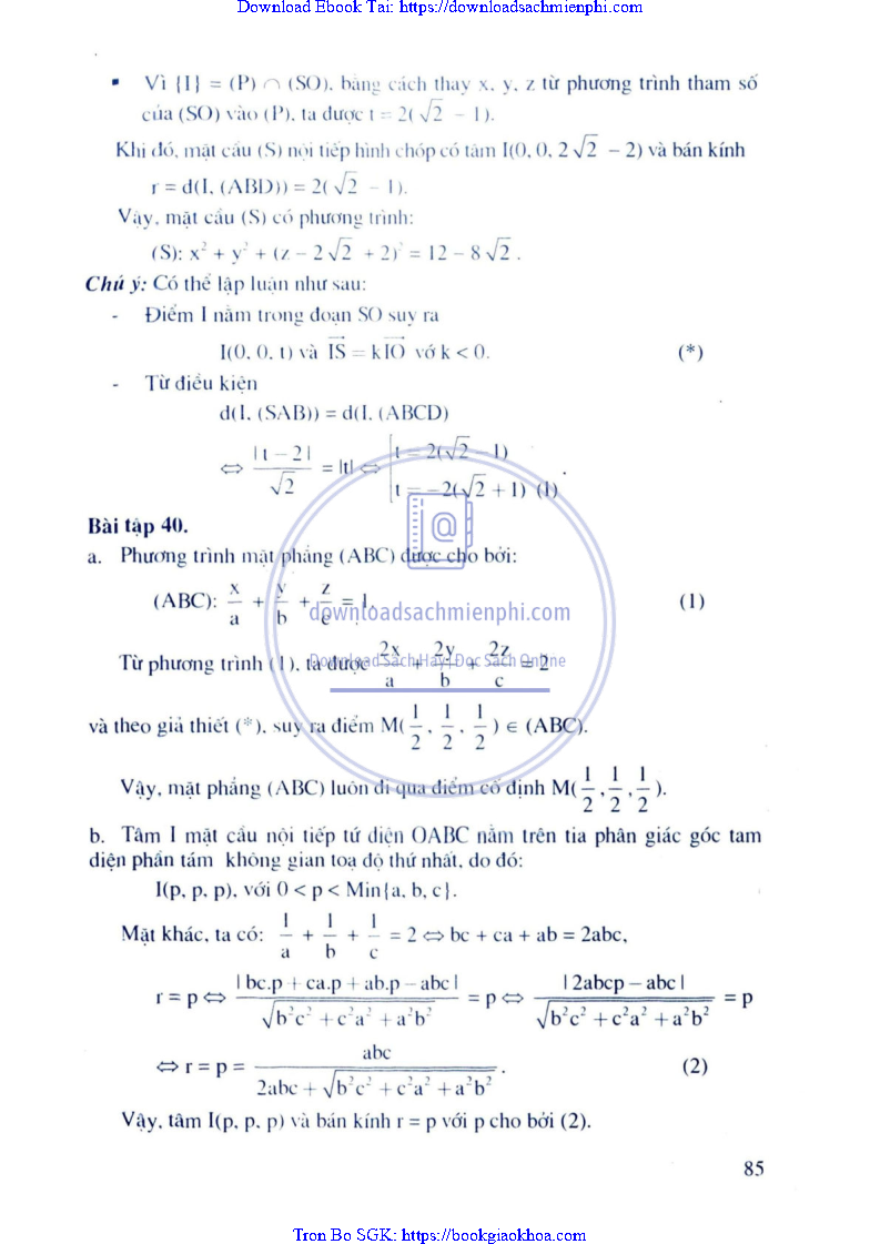 Giải Bài Tập Hình Học Lớp 12 Nâng Cao – Nguyễn Văn Lộc