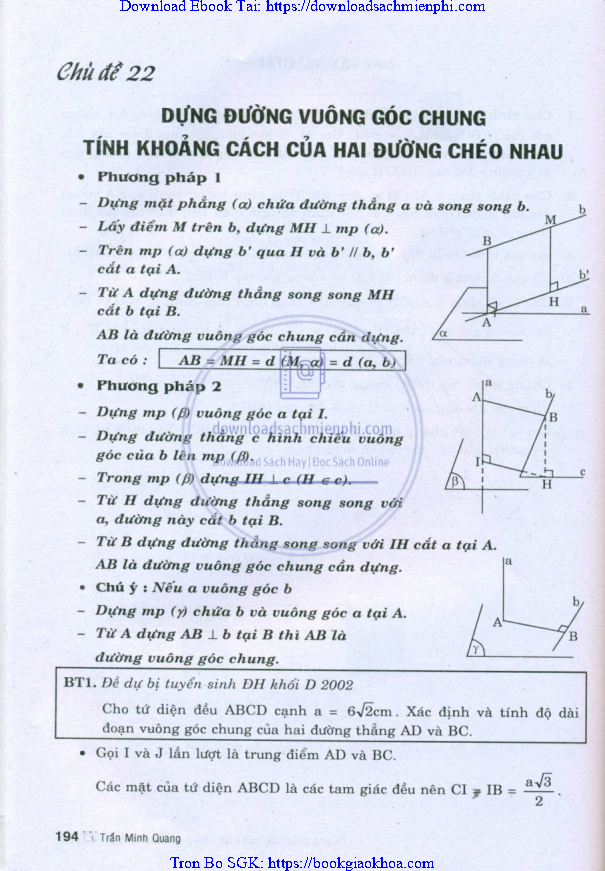 - CHỦ ĐỀ 22. DỰNG ĐƯỜNG VUÔNG GÓC CHUNG. TÍNH KHOẢNG CÁCH CỦA HAI ĐƯỜNG CHÉO NHAU
