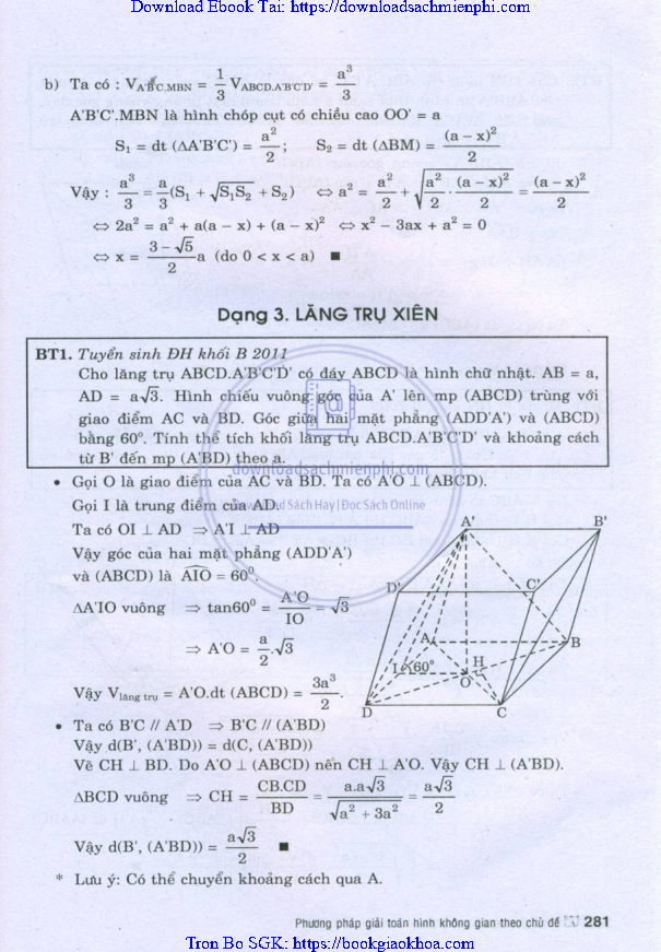 Giải Bài Tập Hình Học Lớp 12 Nâng Cao – Nguyễn Văn Lộc