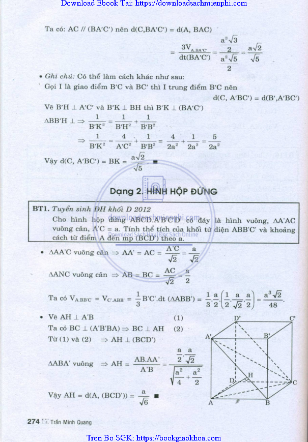 Giải Bài Tập Hình Học Lớp 12 Chương Trình Chuẩn – Nguyễn Văn Lộc