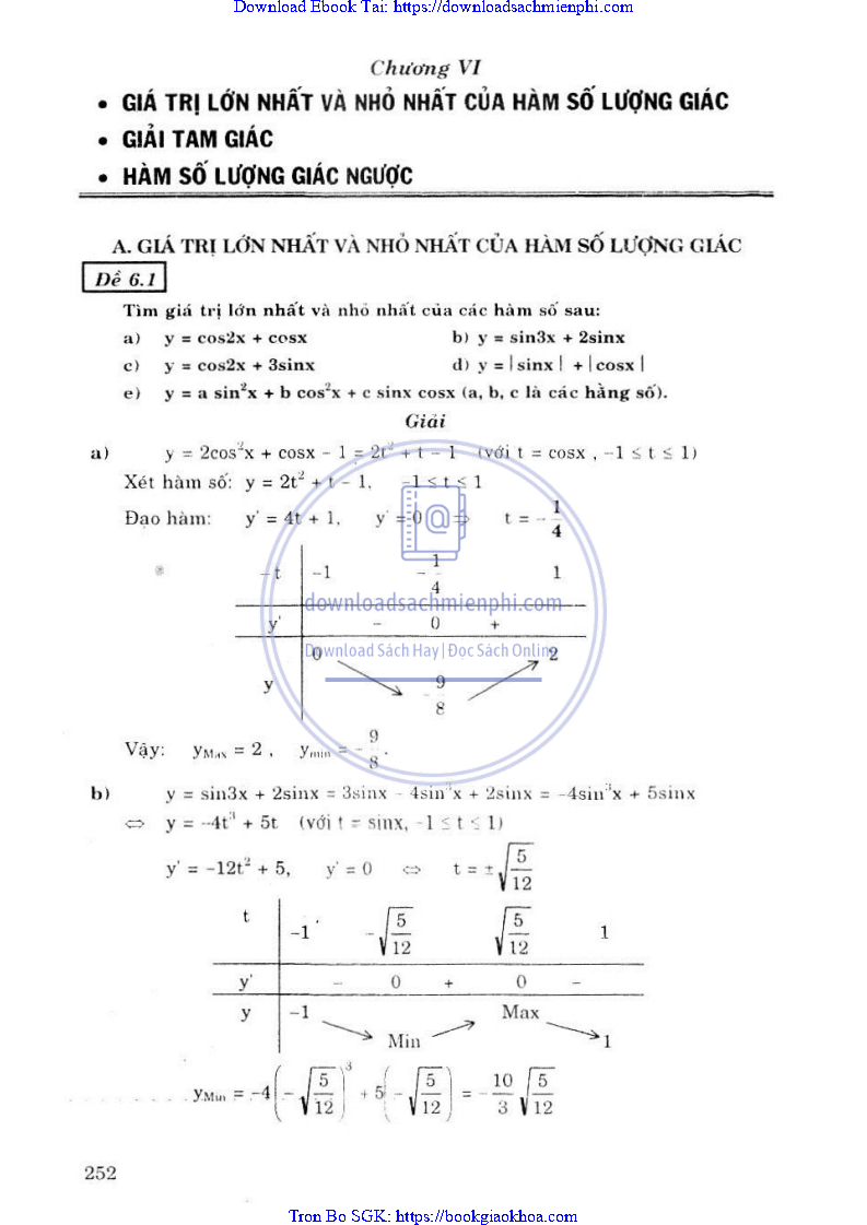 - CHƯƠNG VI: GIÁ TRỊ LỚN NHẤT VÀ NHỎ NHẤT CỦA HÀM SỐ LƯỢNG GIÁC – GIẢI TAM GIÁC – HÀM SỐ LƯỢNG GIÁC NGƯỢC