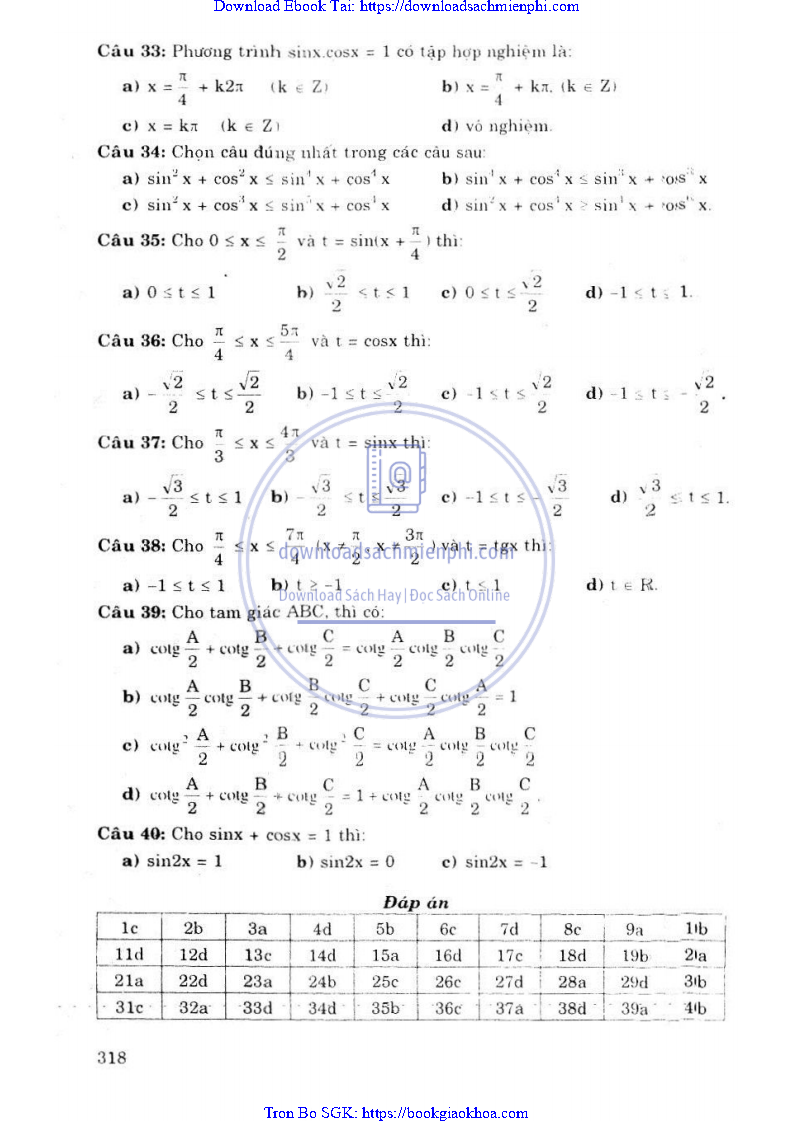 - CHƯƠNG VI: GIÁ TRỊ LỚN NHẤT VÀ NHỎ NHẤT CỦA HÀM SỐ LƯỢNG GIÁC – GIẢI TAM GIÁC – HÀM SỐ LƯỢNG GIÁC NGƯỢC