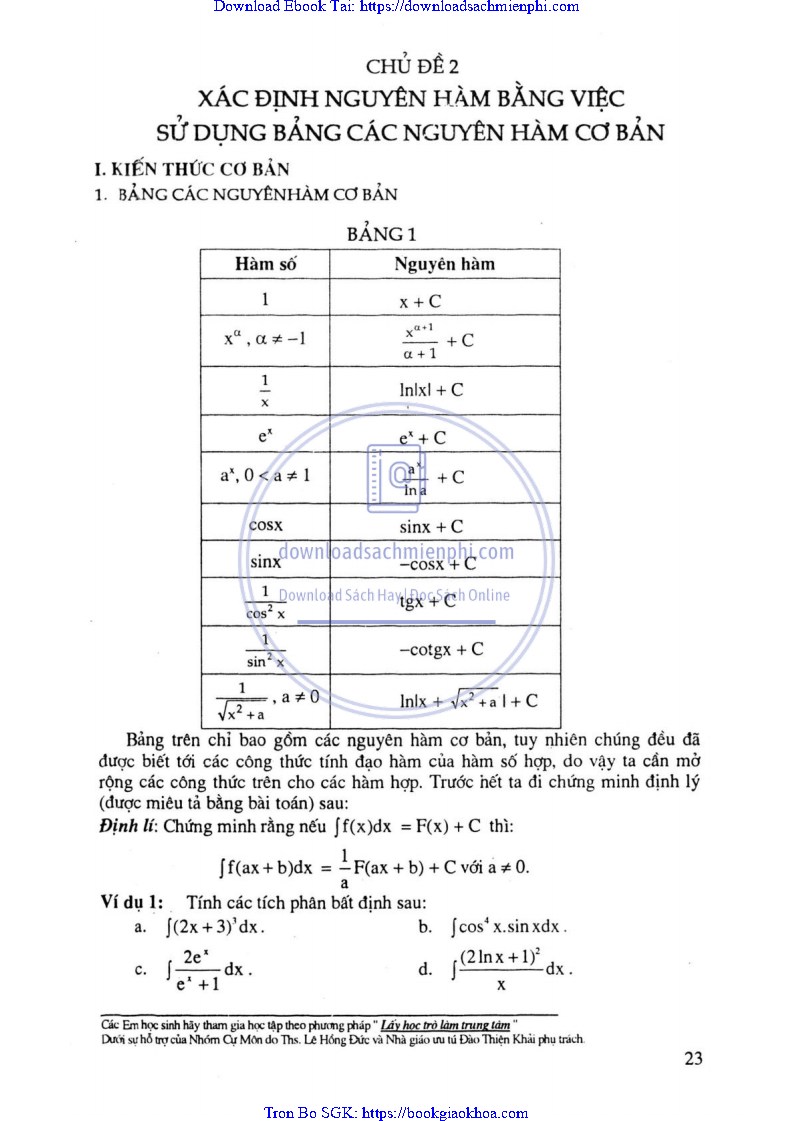 CHỦ ĐỀ 2: XÁC ĐỊNH NGUYÊN HÀM BẰNG VIỆC SỬ DỤNG BẢNG CÁC NGUYÊN HÀM CƠ BẢN