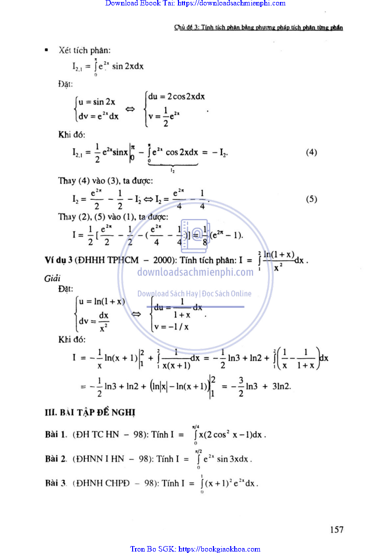 - CHỦ ĐỀ 3: TÍNH TÍCH PHÂN BẰNG PHƯƠNG PHÁP TÍCH PHÂN TỪNG PHẦN