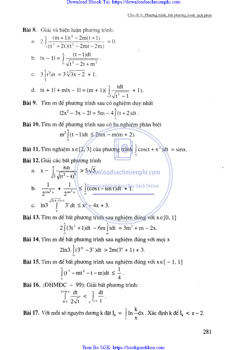 CHỦ ĐỀ 6: PHƯƠNG TRÌNH, BẤT PHƯƠNG TRÌNH TÍCH PHÂN