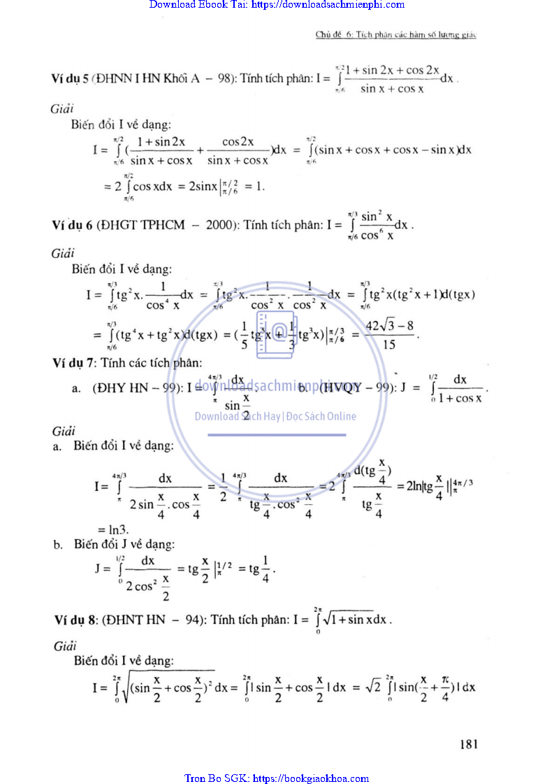 - CHỦ ĐỀ 6: TÍCH PHÂN CÁC HÀM LƯỢNG GIÁC