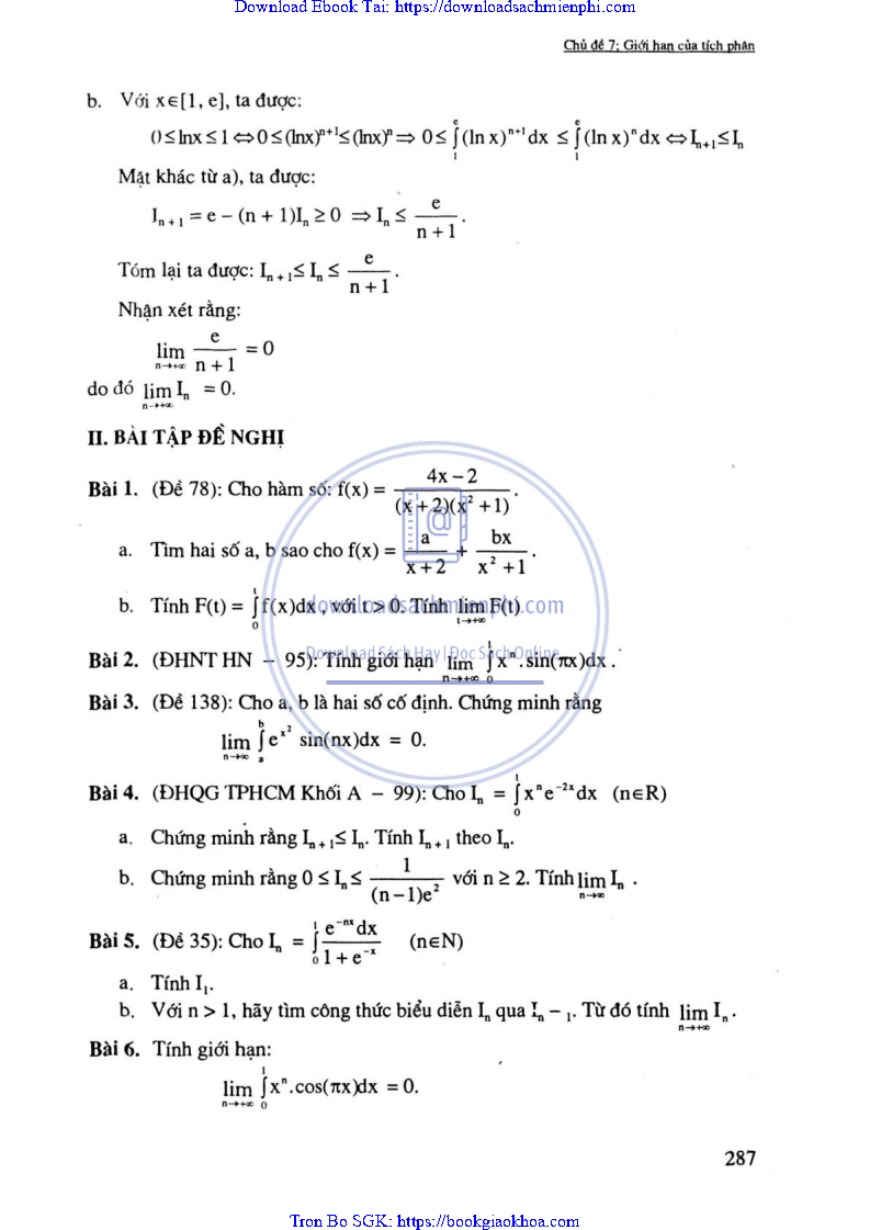CHỦ ĐỀ 7: GIỚI HẠN CỦA TÍCH PHÂN