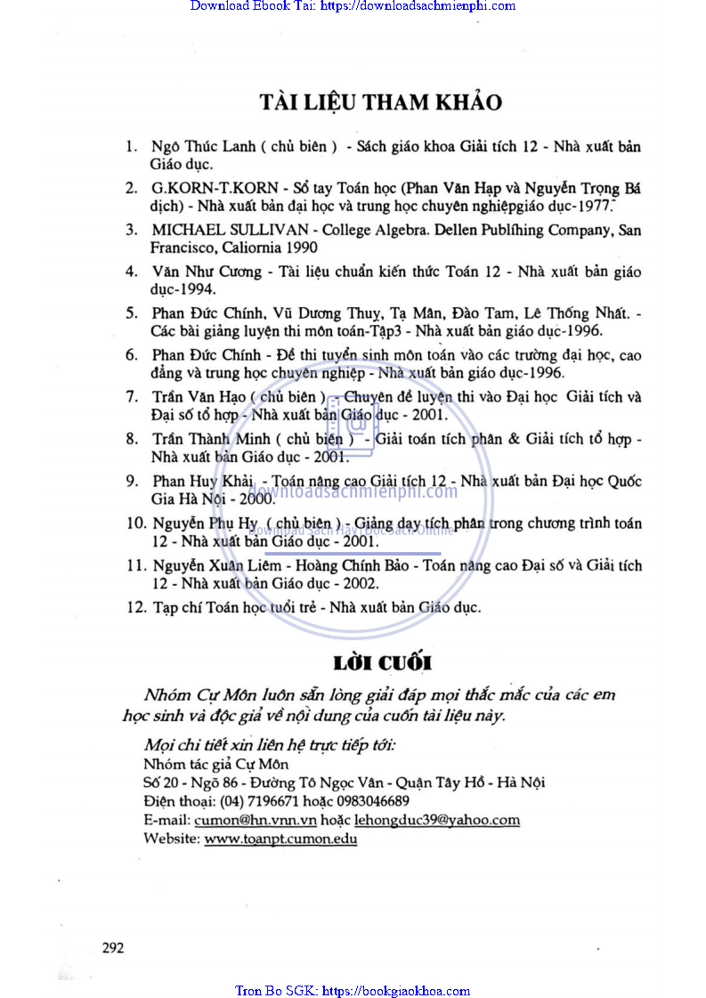 Giải Bài Tập Giải Tích 12 – Nguyễn Vũ Thanh