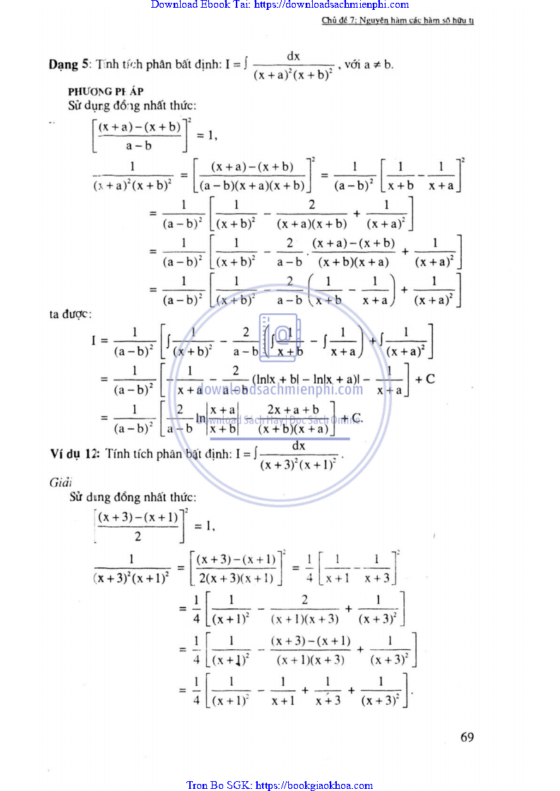 CHỦ ĐỀ 7: NGUYÊN HÀM CÁC HÀM SỐ HỮU TỈ