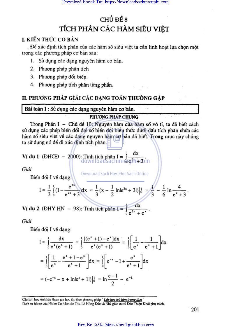 CHỦ ĐỀ 8: TÍCH PHÂN CÁC HÀM SIÊU VIỆT