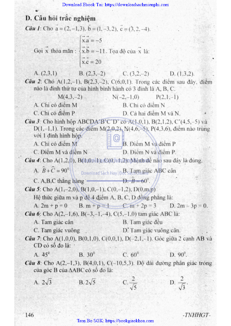 - CÂU HỎI TRẮC NGHIỆM VỀ HÌNH GIẢI TÍCH TRONG KHÔNG GIAN