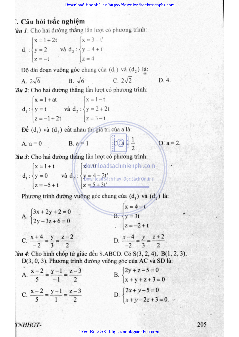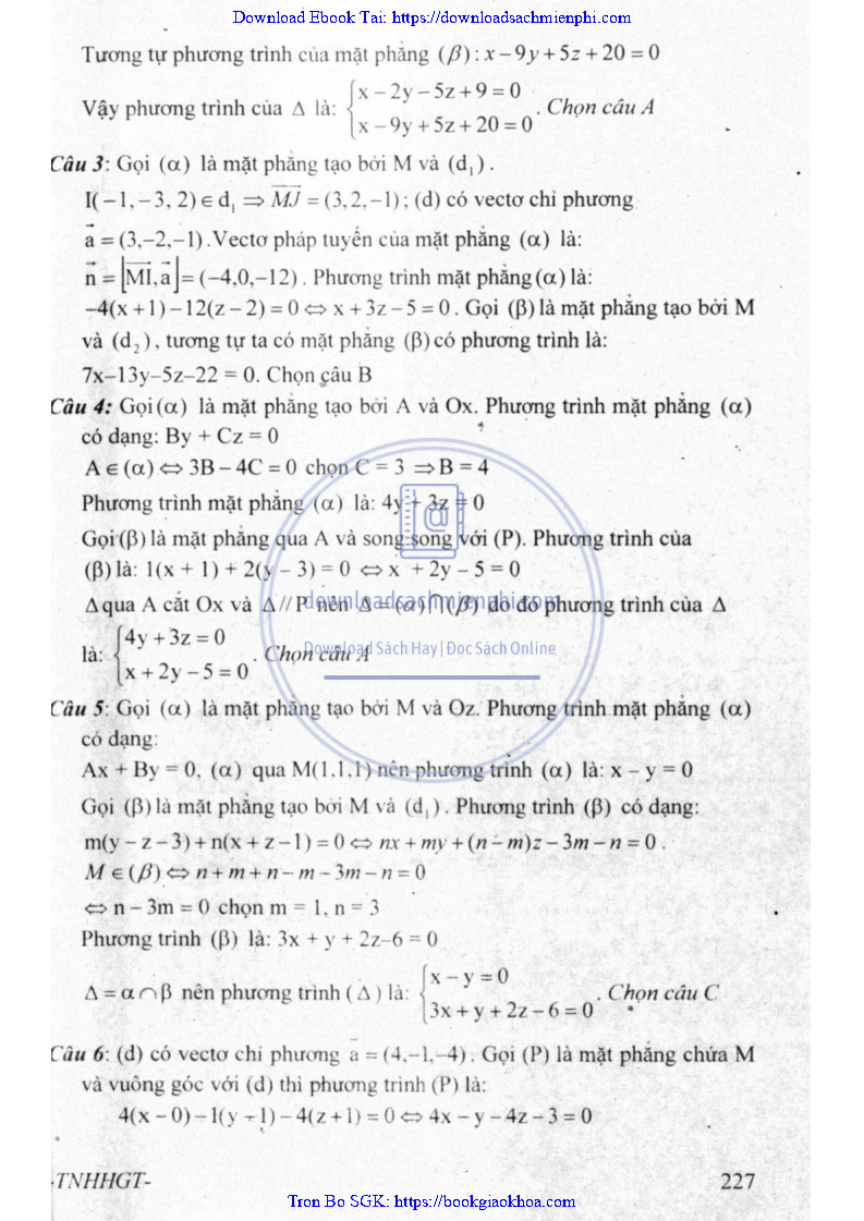 Phương Pháp Giải Toán Trắc Nghiệm Hình Học Giải Tích – Trần Bá Hà