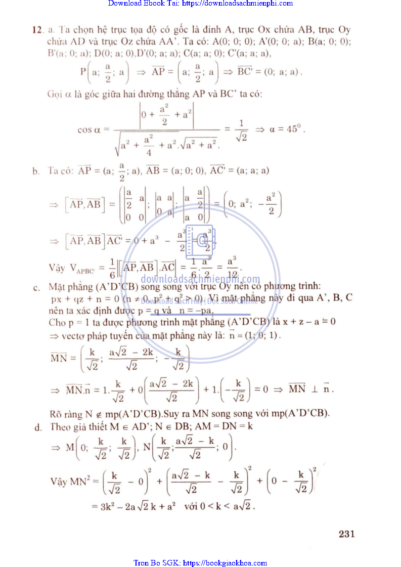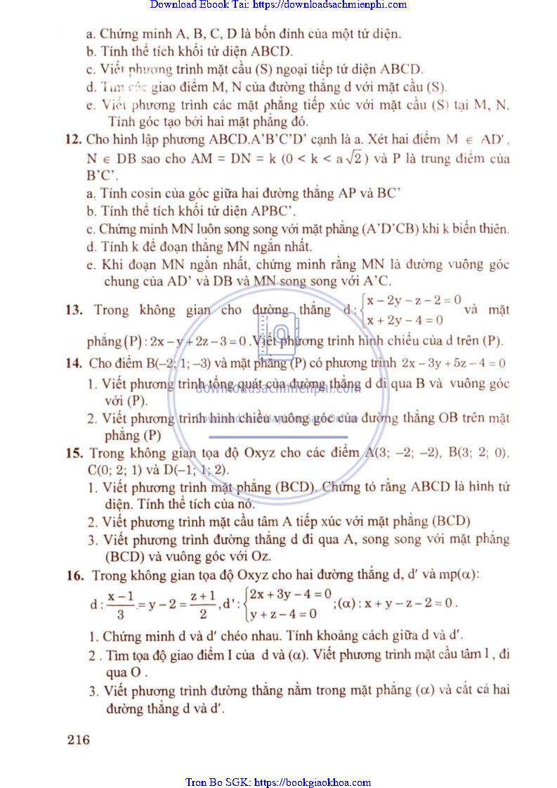 Giải Bài Tập Hình Học 12 Nâng Cao – Nguyễn Vũ Thanh