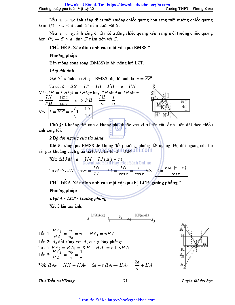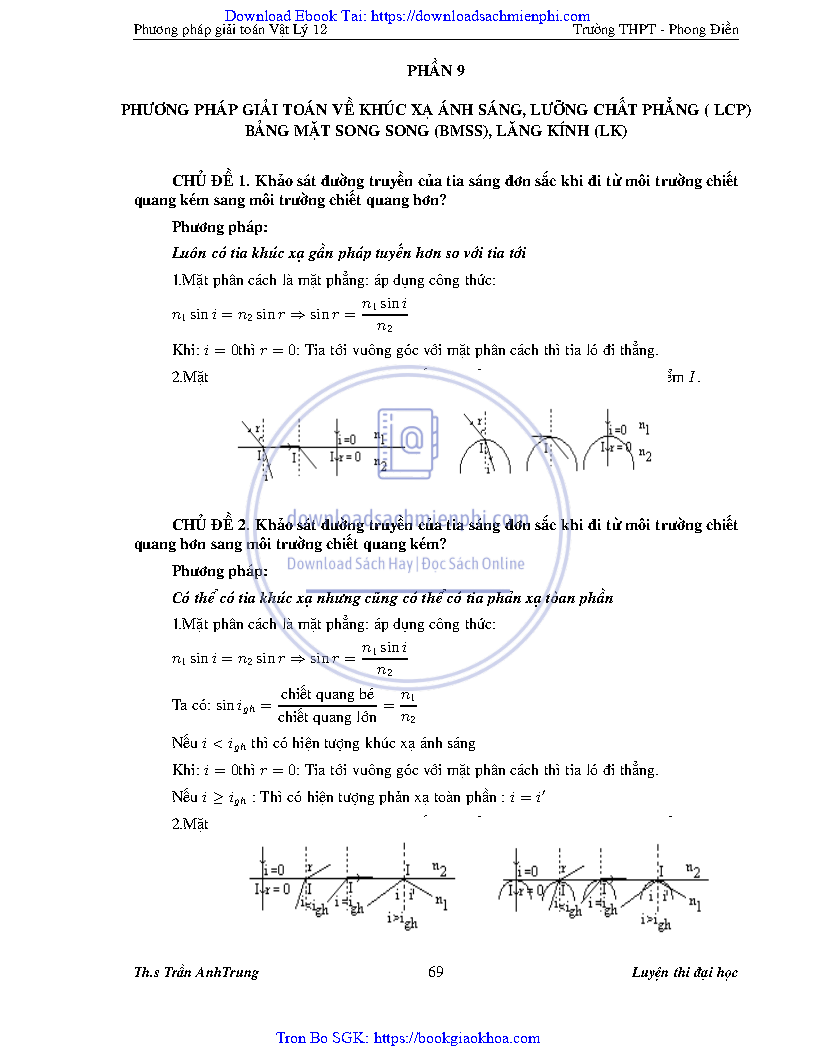 - PHẦN 9. PHƯƠNG PHÁP GIẢI TOÁN VỀ KHÚC XẠ ÁNH SÁNG, LƯỠNG CHẤT PHẲNG (LCP), BẢNG MẶT SONG SONG (BMSS), LĂNG KÍNH (LK)