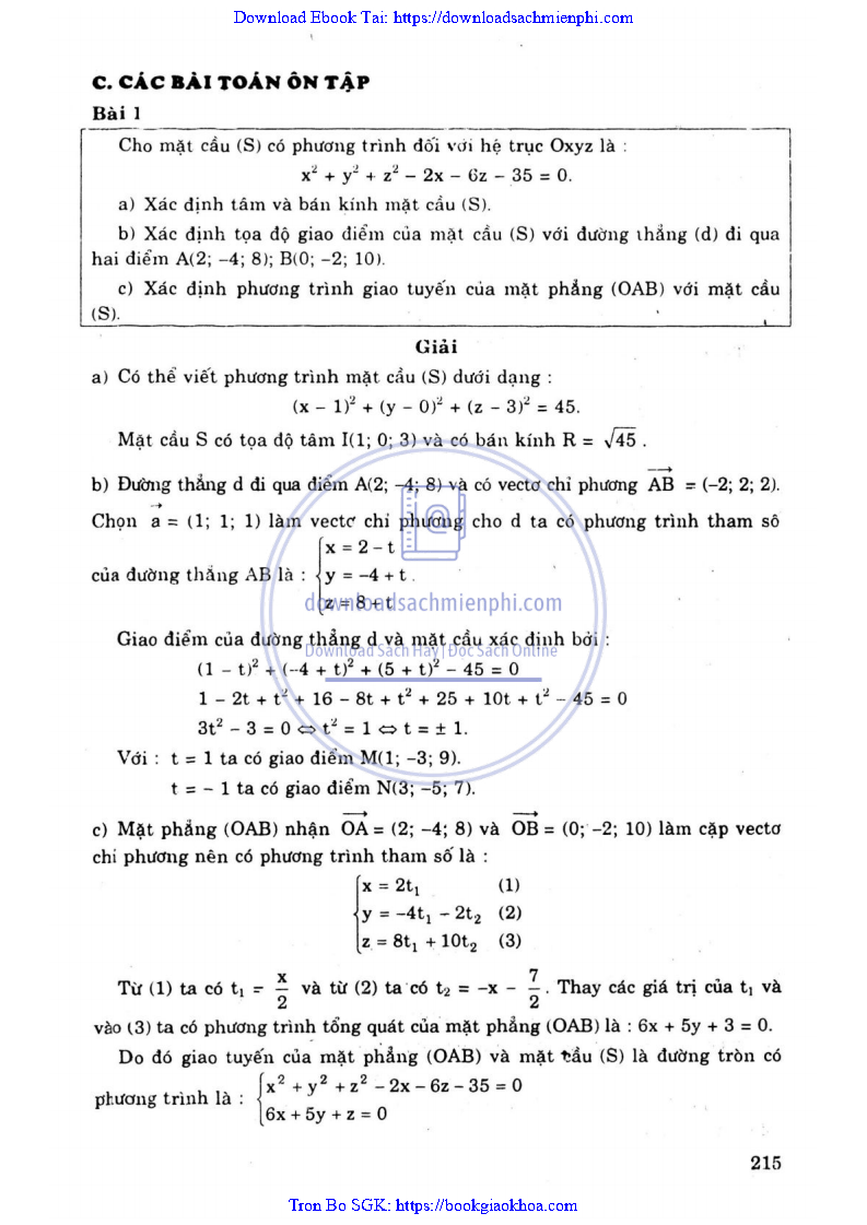 Giải Bài Tập Hình Học Lớp 12 Nâng Cao – Nguyễn Văn Lộc