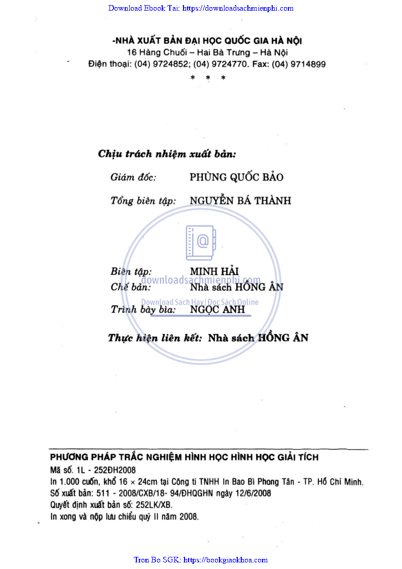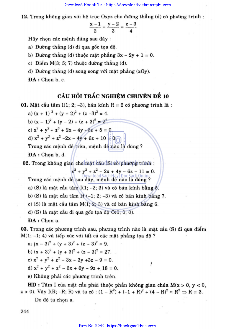 Phương Pháp Trắc Nghiệm Hình Học Giải Tích 12 – Nguyễn Mộng Hy, Đậu Thế Cấp