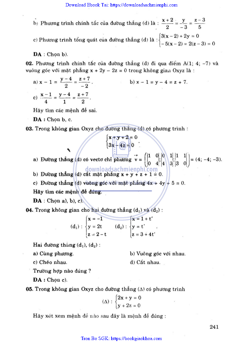 Phương Pháp Giải Toán Trắc Nghiệm Hình Học Giải Tích – Trần Bá Hà