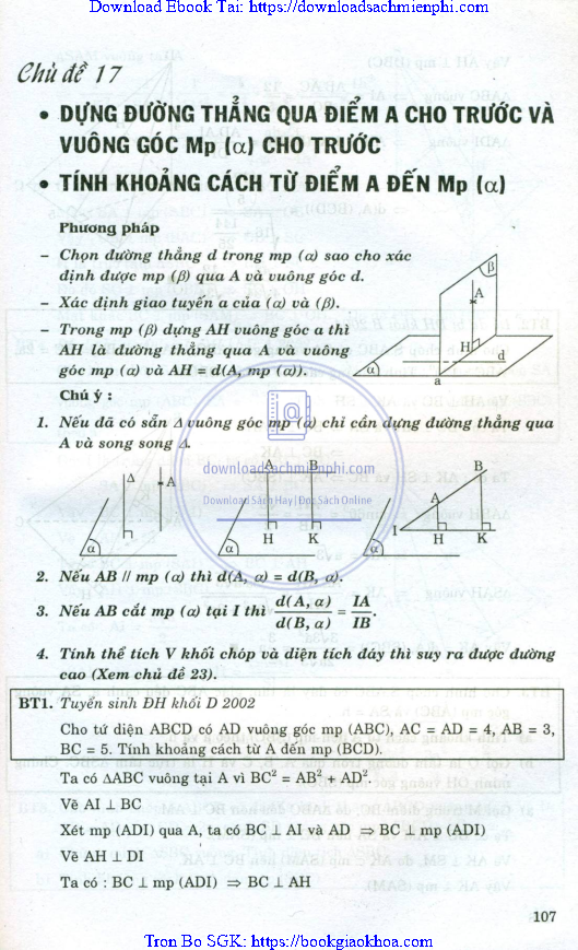 CHỦ ĐỀ 17. DỰNG ĐƯỜNG THẲNG QUA ĐIỂM A CHO TRƯỚC VÀ VUÔNG GÓC MẶT PHẲNG CHO TRƯỚC. TÍNH KHOẢNG CÁCH TỪ ĐIỂM A ĐẾN MẶT PHẲNG