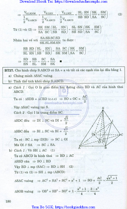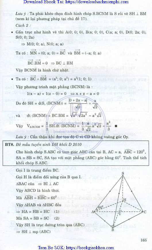 Giải Bài Tập Hình Học Lớp 12 Nâng Cao – Nguyễn Văn Lộc