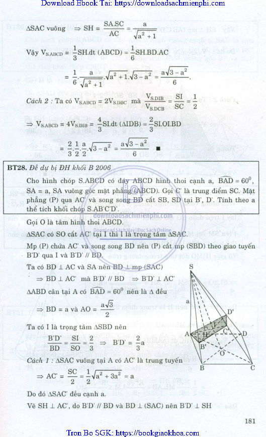 Giải Bài Tập Hình Học Lớp 12 Chương Trình Chuẩn – Nguyễn Văn Lộc