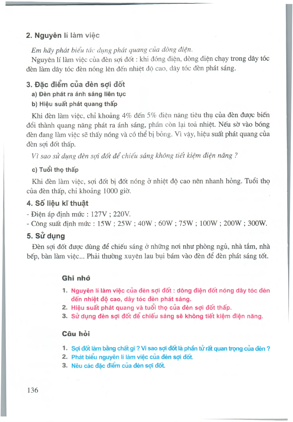 Bài 38. Đồ dùng loại điện – quang: Đèn sợi đốt