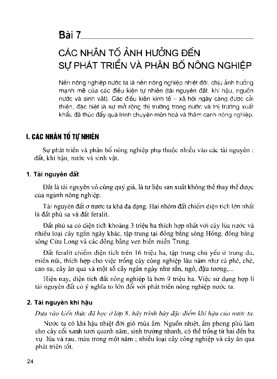 Bài 7: Các nhân tố ảnh hưởng đến sự phát triển và phân bố nông nghiệp