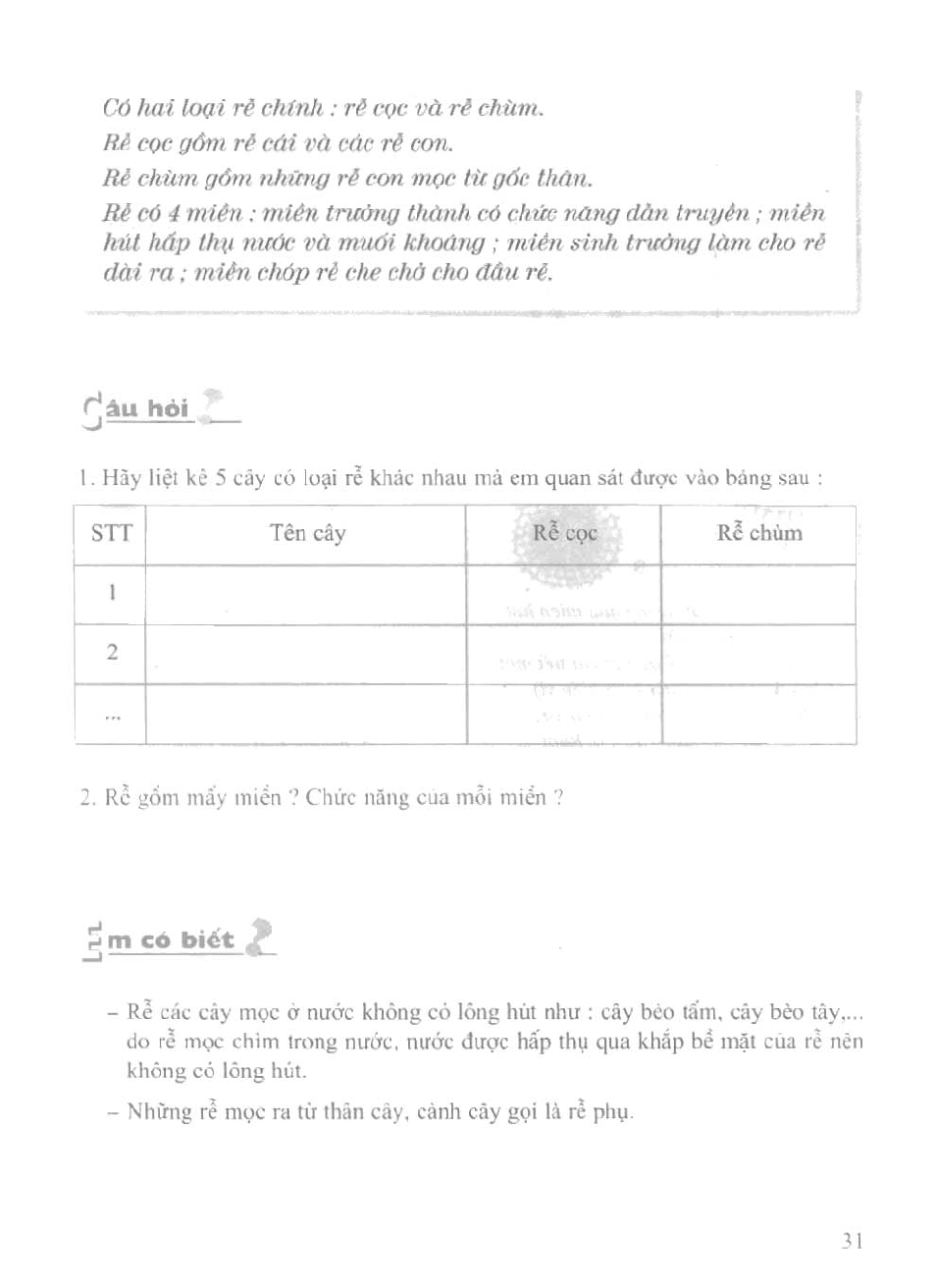 Bài 9. Các loại rễ, các miền của rễ