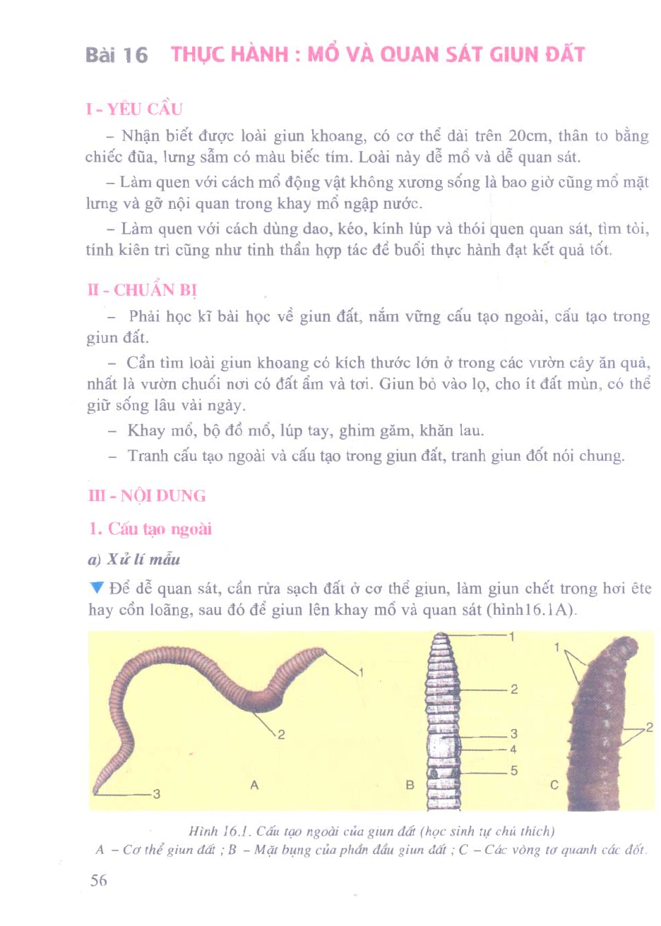 Bài 16: Thực hành: Mổ và quan sát giun đất