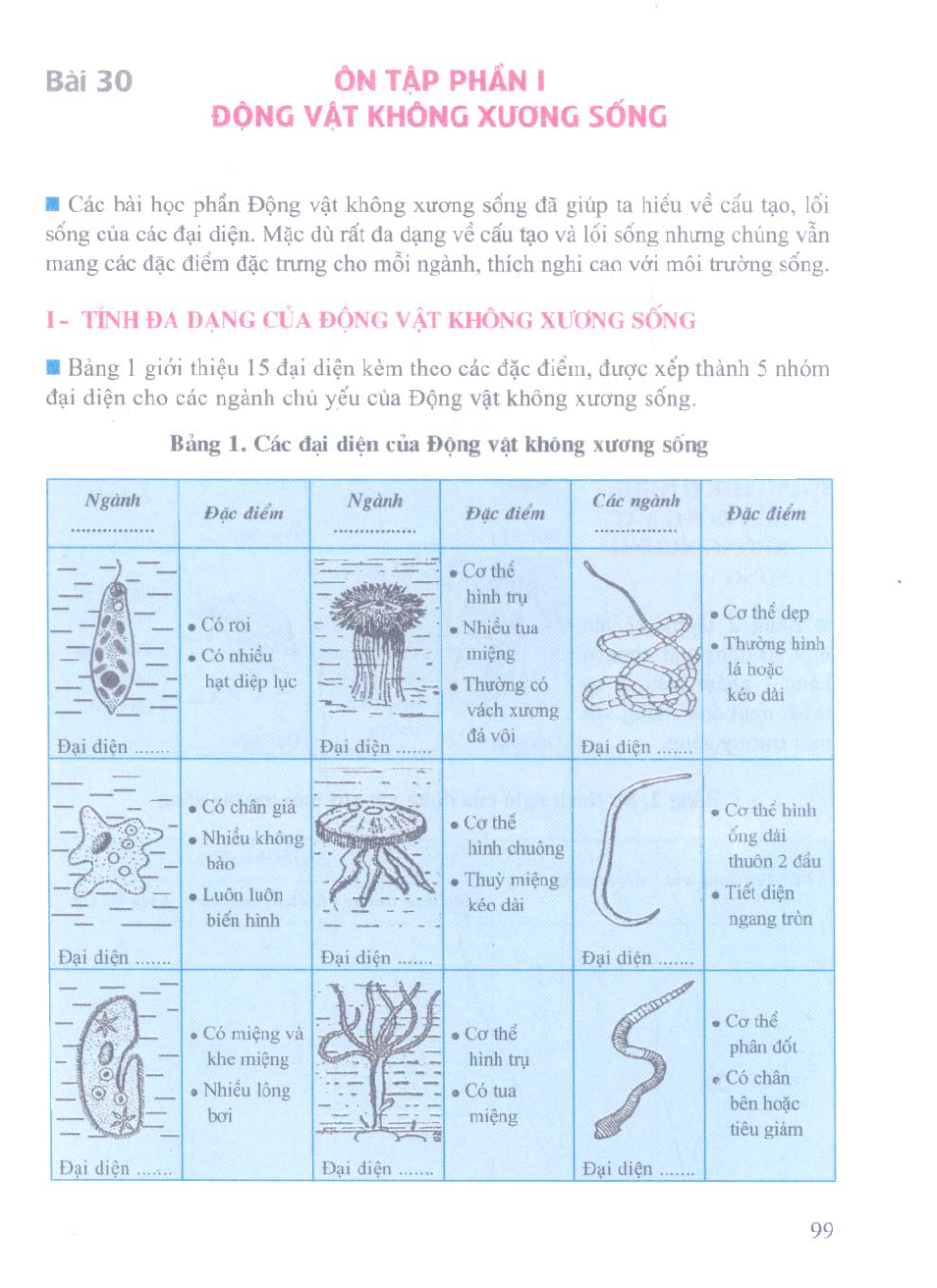 Bài 30: Ôn tập phần 1 – Động vật không xương sống