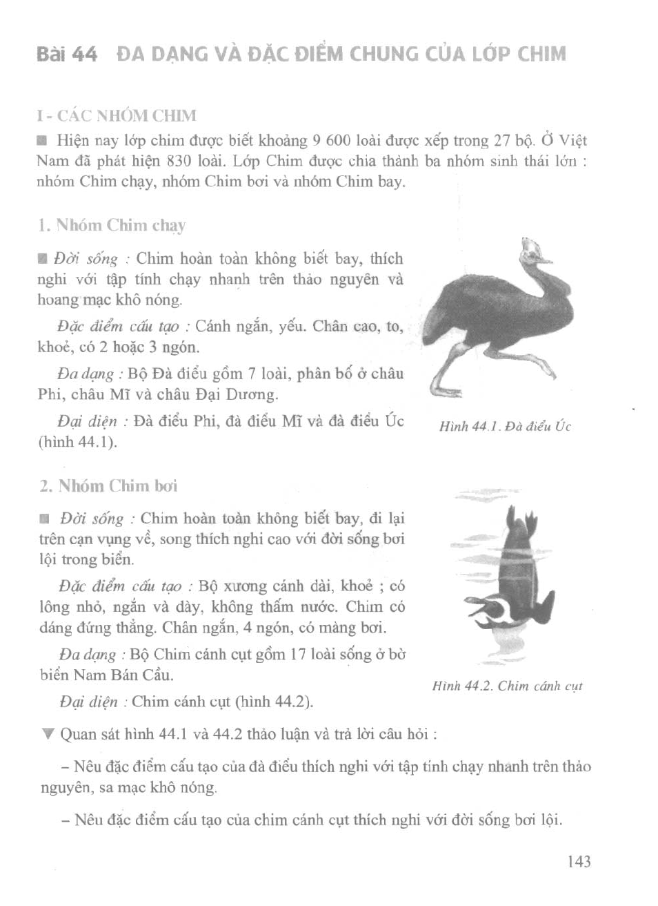 Bài 44: Đa dạng và đặc điểm chung của lớp chim