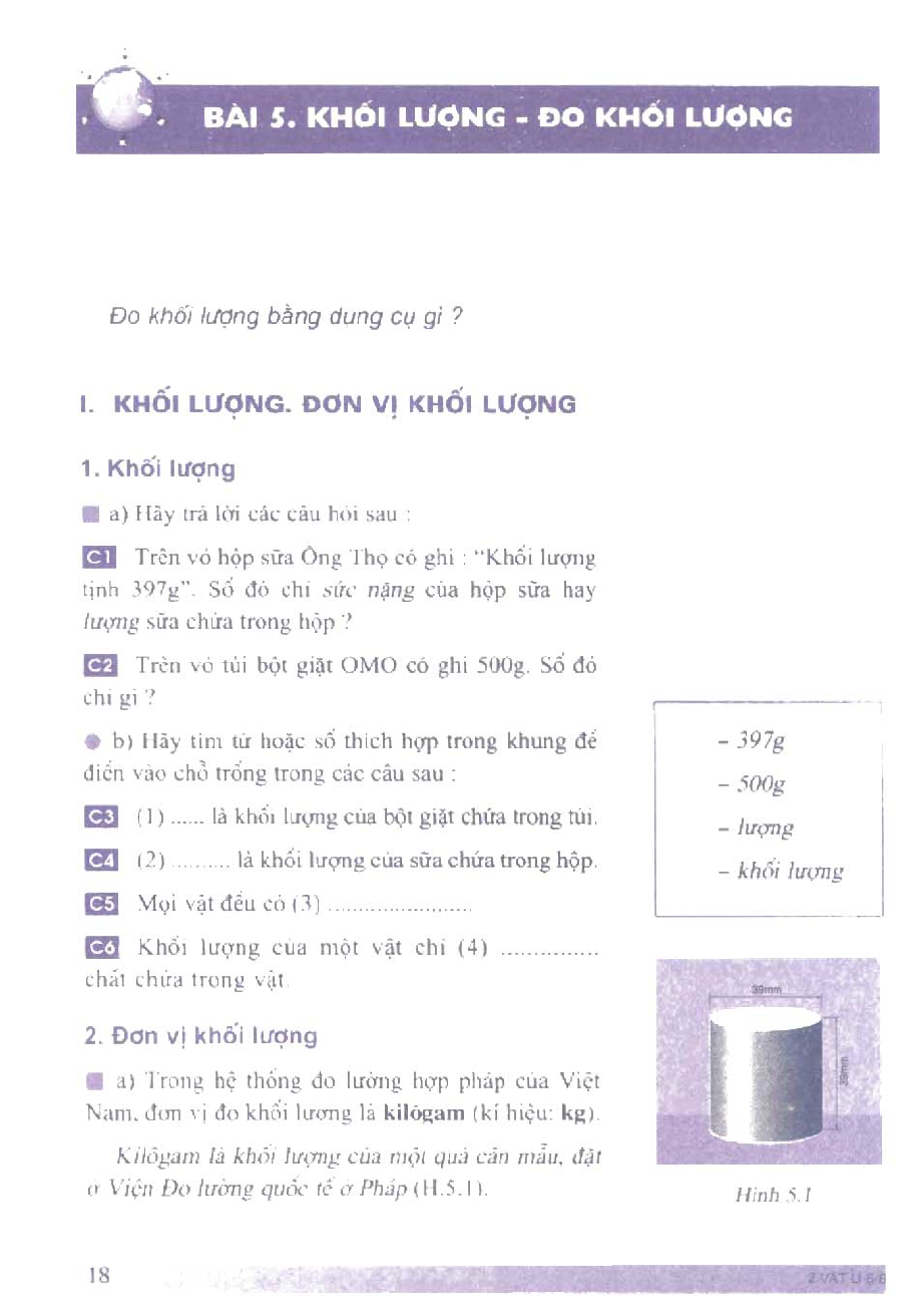 Bài 5. Khối lượng – Đo khối lượng