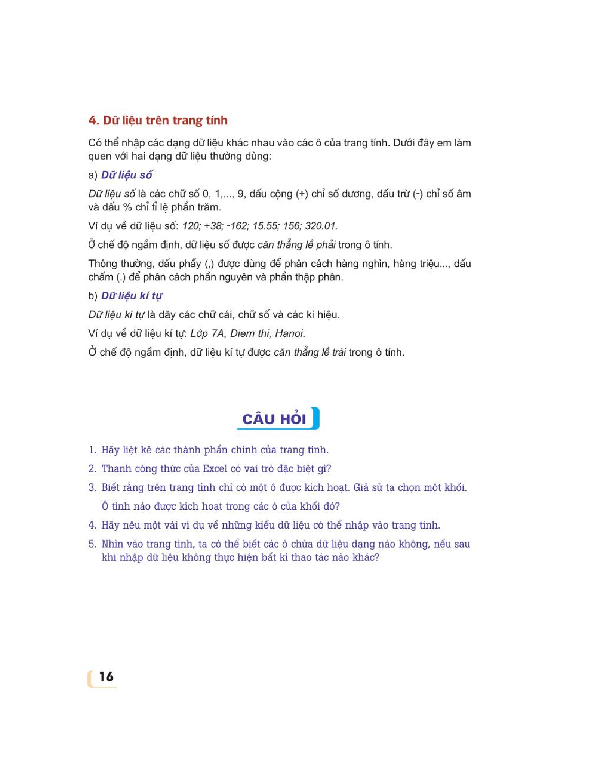 Bài 2: Các thành phần chính và dữ liệu trên trang tính