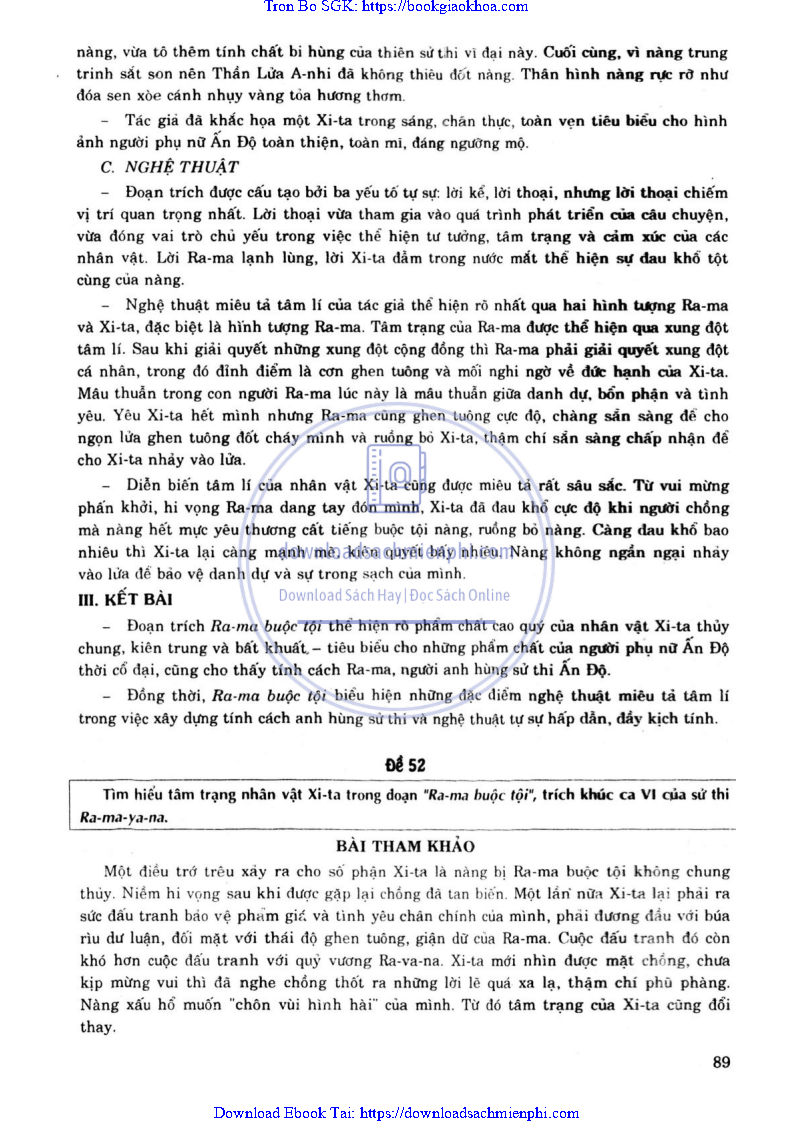 ĐỀ 52. TÌM HIỂU TÂM TRẠNG NHÂN VẬT XI-TA TRONG ĐOẠN “RA-MA BUỘC TỘI” TRÍCH KHÚC CA VI CỦA SỬ THI “RA-MA-YA-NA”