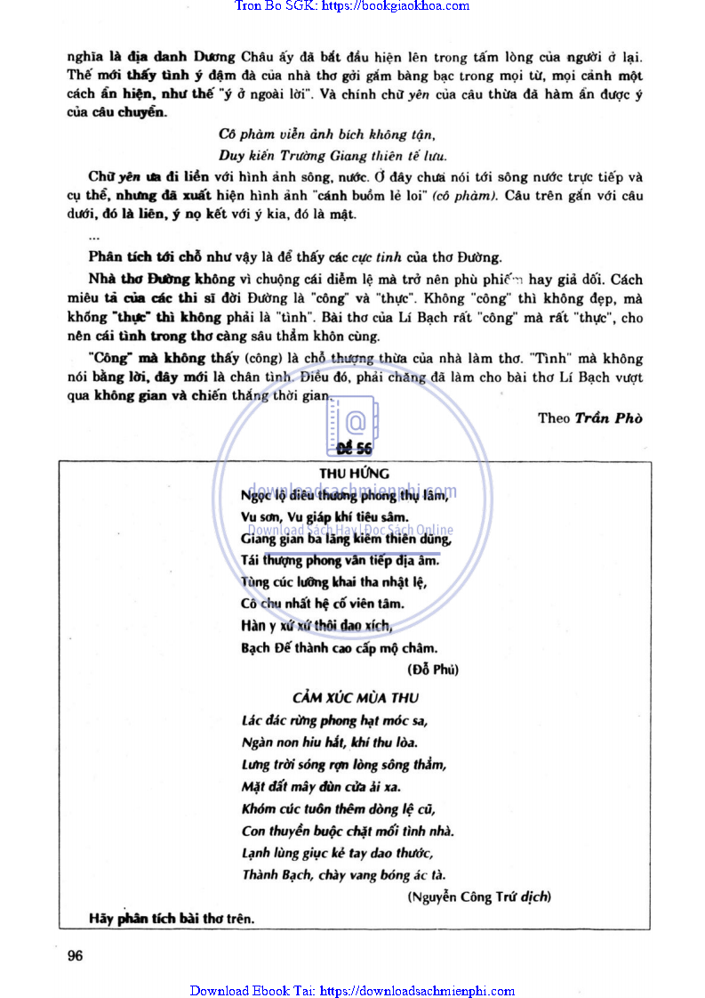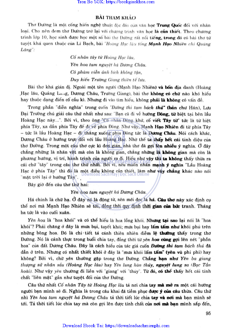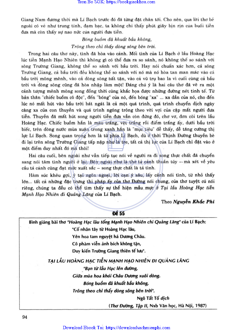 ĐỀ 55. BÌNH GIẢNG BÀI THƠ “HOÀNG HẠC LÂU TỐNG MẠNH HẠO NHIÊN CHI QUẢNG LĂNG” CỦA LÍ BẠCH