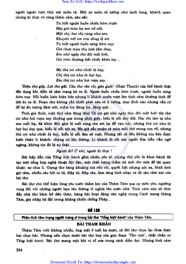 ĐỀ 127. BÌNH GIẢNG BÀI THƠ “TỐNG BIỆT HÀNH” CỦA THÂM TÂM