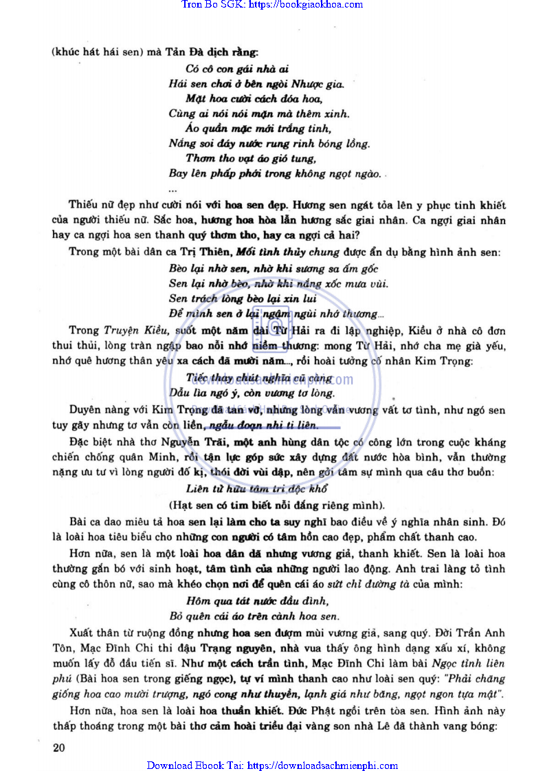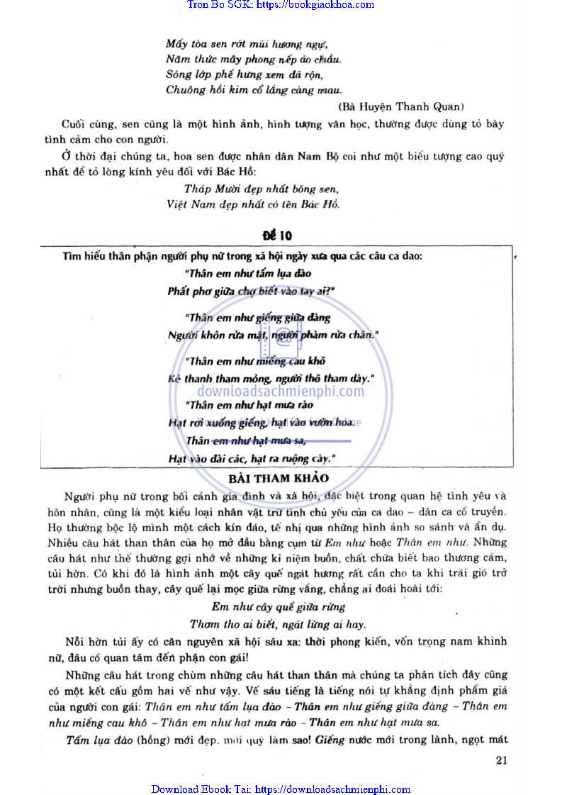 ĐỀ 13. BÌNH GIẢNG BÀI CA DAO “BÔNG SEN”. HÌNH ẢNH HOA SEN CÒN ĐƯỢC THỂ HIỆN THẾ NÀO QUA THƠ VĂN
