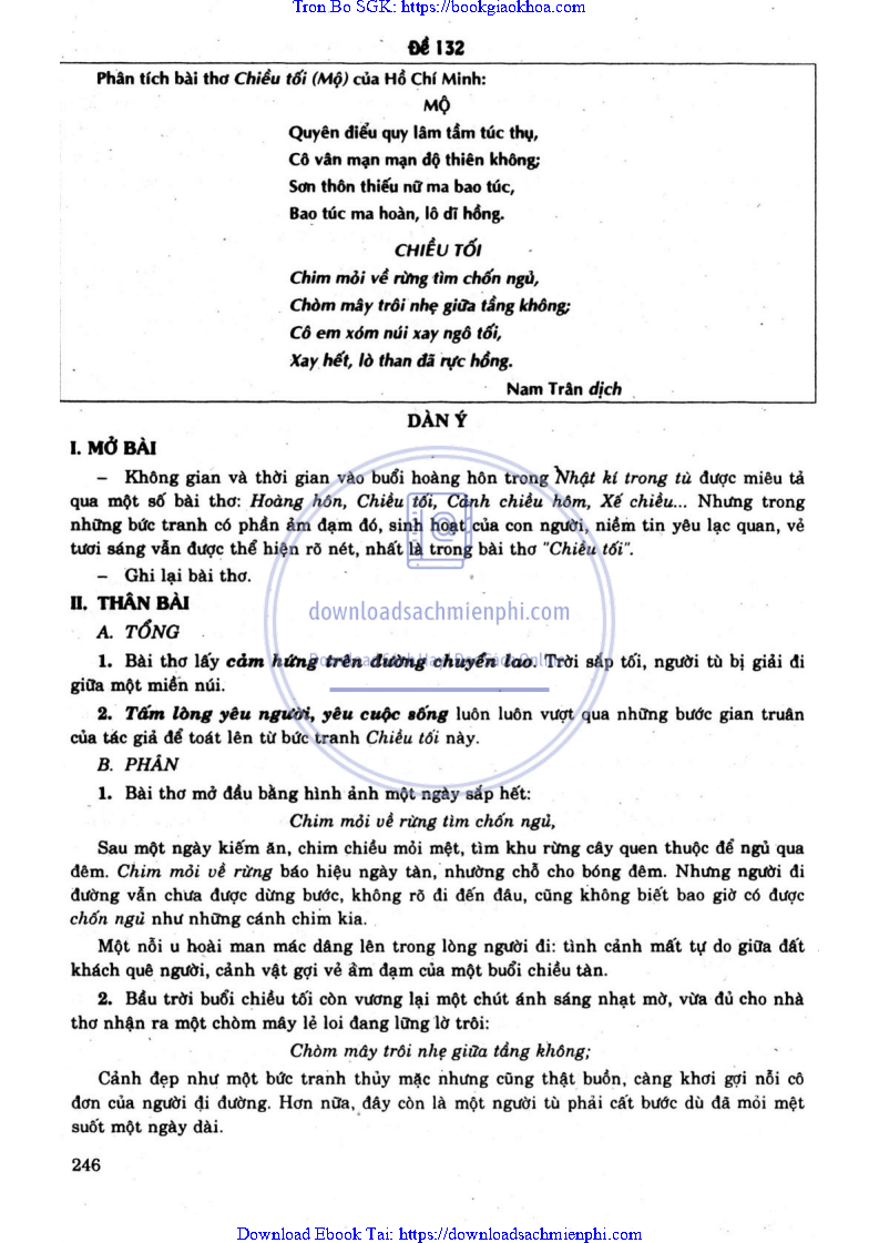 ĐỀ 132. PHÂN TÍCH BÀI THƠ “CHIỀU TỐI” (MỘ) CỦA HỒ CHÍ MINH