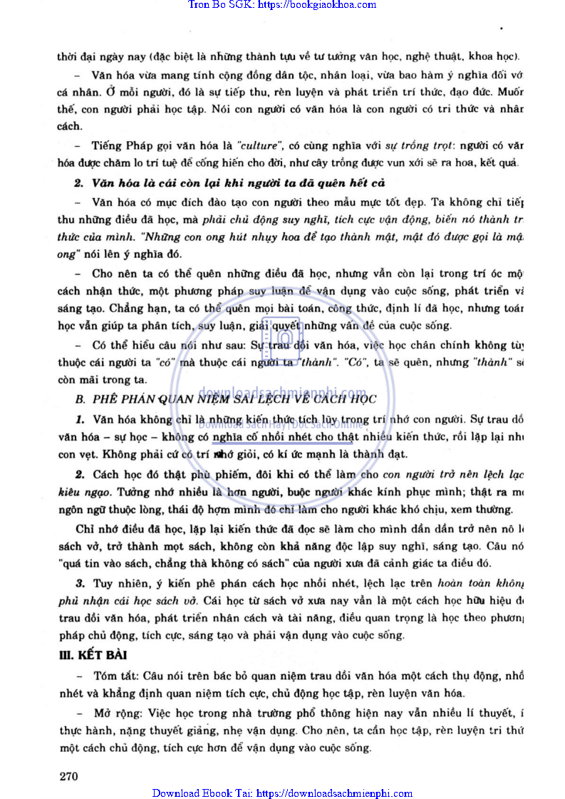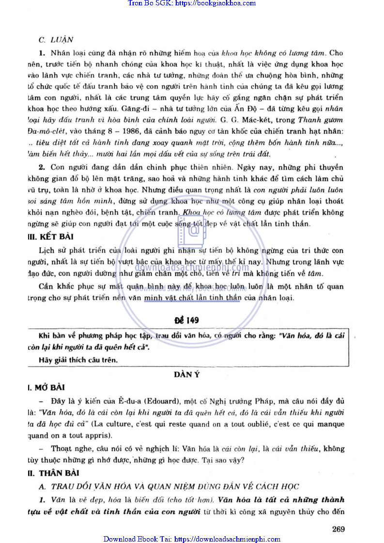 ĐỀ 153. KHI BÀN VỀ PHƯƠNG PHÁP HỌC TẬP, TRAU DỒI VĂN HÓA, CÓ NGƯỜI CHO RẰNG: “VĂN HÓA, ĐÓ LÀ CÁI CÒN LẠI KHI NGƯỜI TA ĐÃ QUÊN HẾT CẢ”. HÃY GIẢI THÍCH CÂU TRÊN