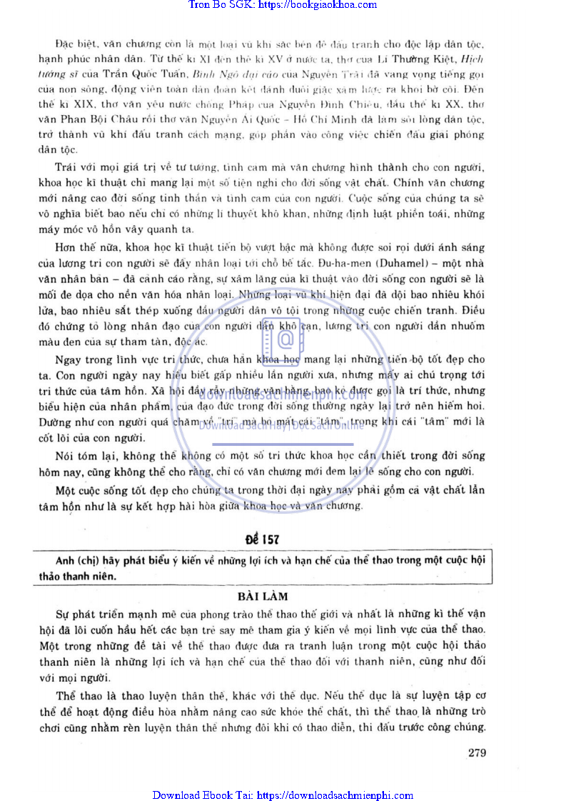 ĐỀ 157. ANH (CHỊ) HÃY PHÁT BIỂU Ý KIẾN VỀ NHỮNG LỢI ÍCH VÀ HẠN CHẾ CỦA THỂ THAO TRONG CUỘC HỘI THẢO THANH NIÊN