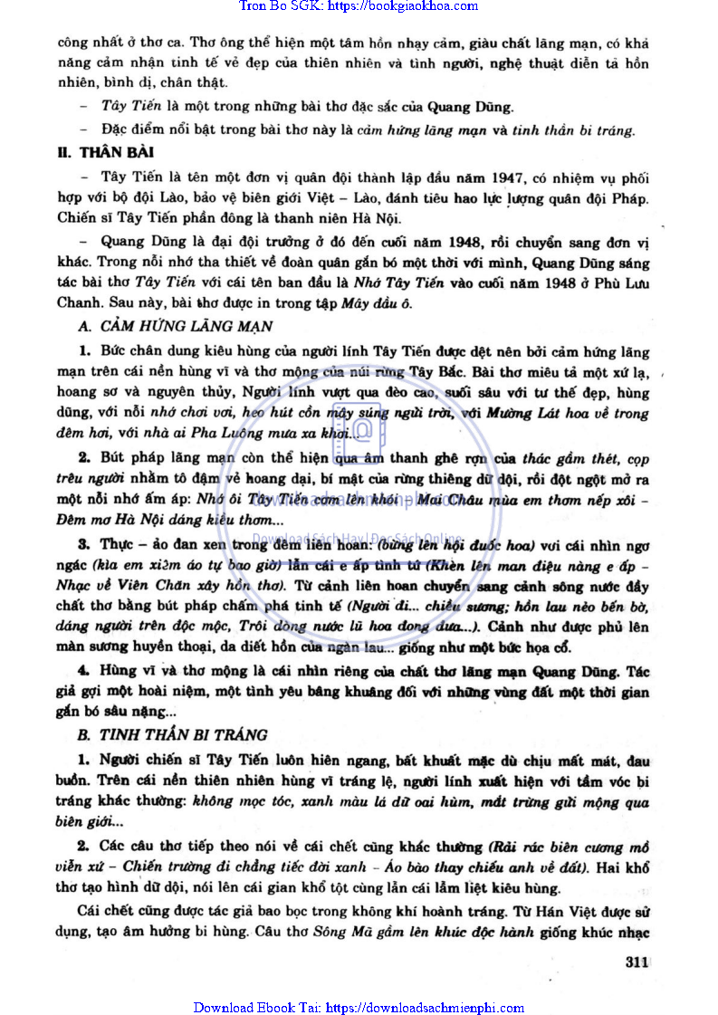 - ĐỀ 172. “CẢM HỨNG LÃNG MẠN VÀ TINH THẦN BI TRÁNG LÀ ĐẶC ĐIỂM NỔI BẬT TRONG BÀI THƠ TÂY TIẾN CỦA QUANG DŨNG”. HÃY CHỨNG MINH NHẬN ĐỊNH TRÊN