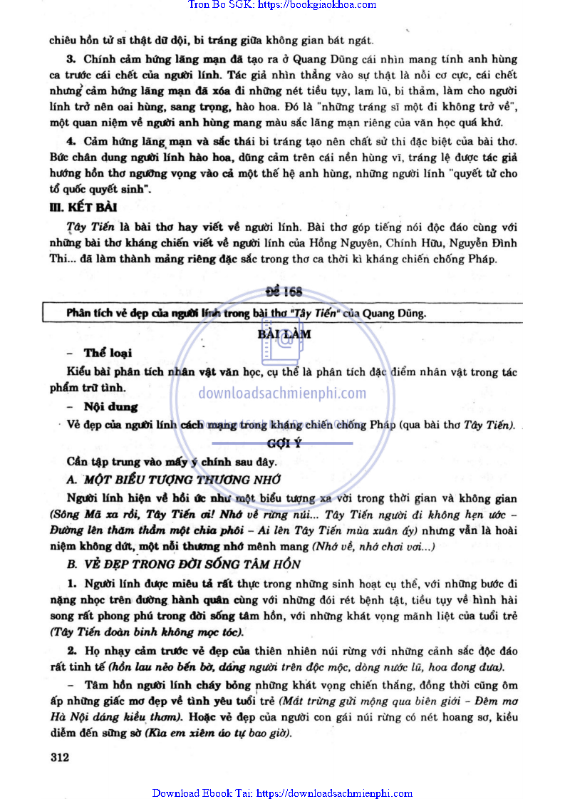 - ĐỀ 172. “CẢM HỨNG LÃNG MẠN VÀ TINH THẦN BI TRÁNG LÀ ĐẶC ĐIỂM NỔI BẬT TRONG BÀI THƠ TÂY TIẾN CỦA QUANG DŨNG”. HÃY CHỨNG MINH NHẬN ĐỊNH TRÊN