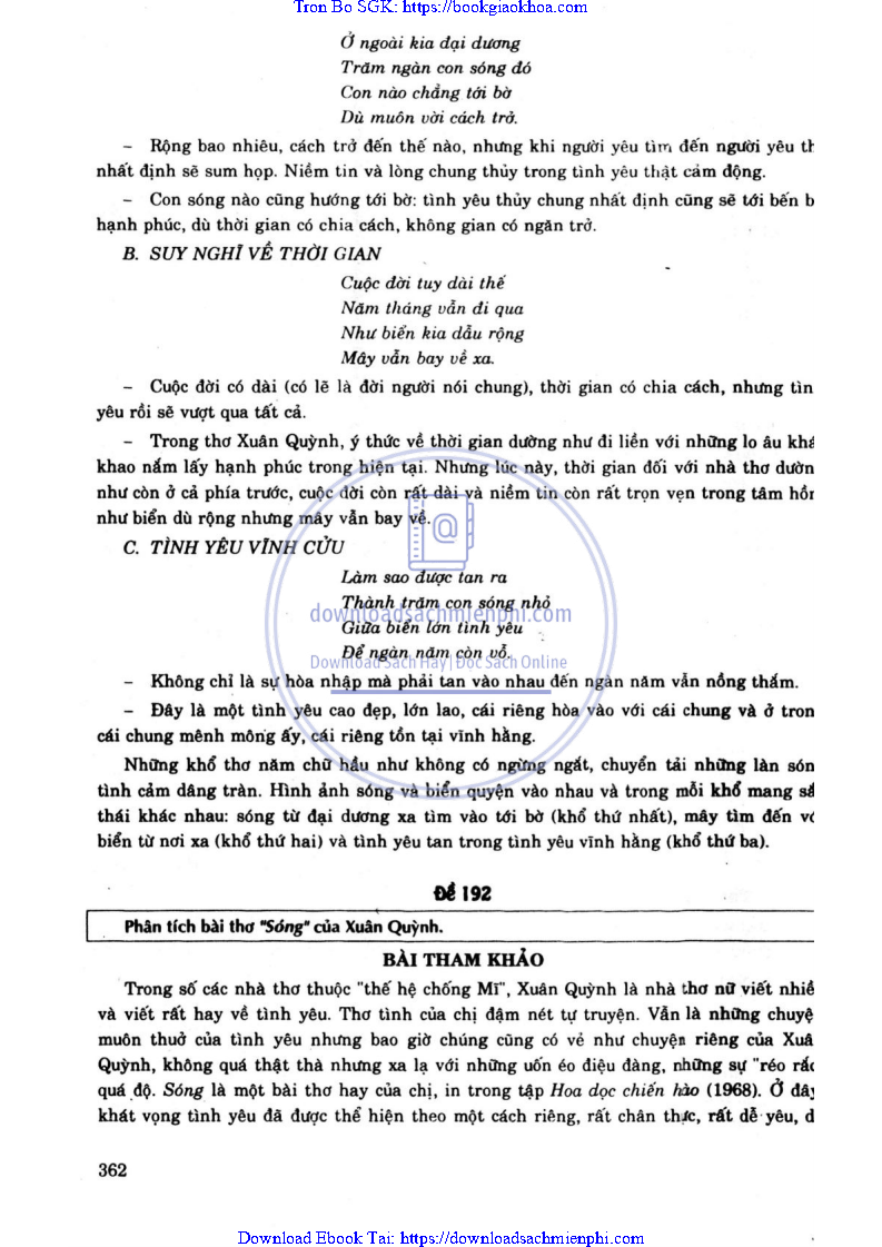 ĐỀ 191. “BÀI THƠ “SÓNG” IN TRONG TẬP “HOA DỌC CHIẾN HÀO” LÀ MỘT TRONG NHỮNG BÀI THƠ TIÊU BIỂU CỦA XUÂN QUỲNH, THỂ HIỆN MỘT TÂM HỒN LUÔN LUÔN TRĂN TRỞ, KHÁT KHAO ĐƯỢC YÊU THƯƠNG, GẮN BÓ. HÃY BÌNH GIẢNG NHỮNG KHỔ THƠ SAU ĐÂY ĐỂ GÓP PHẦN LÀM RÕ Ý KIẾN TRÊN: “Ở NGOÀI KIA ĐẠI DƯƠNG…ĐỂ NGÀN NĂM CÒN VỖ”