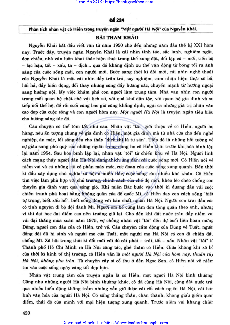 - ĐỀ 224. PHÂN TÍCH NHÂN VẬT CÔ HIỀN TRONG TRUYỆN NGẮN “MỘT NGƯỜI HÀ NỘI” CỦA NGUYỄN KHẢI