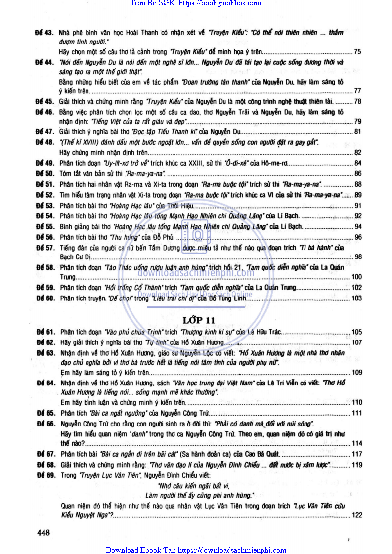 - ĐỀ 46. TÁC PHẨM “NGUYỄN DU – TRUYỆN KIỀU” (TÁC PHẨM CHỌN LỌC 1972, TRANG 13) CÓ VIẾT: “VỪA ĐAU XÓT, THÔNG CẢM, VỪA CA NGỢI, ĐỒNG TÌNH VỚI NHỮNG KẺ BỊ ÁP BỨC, NGUYỄN DU ĐÃ BIỂU LỘ TRONG “TRUYỆN KIỀU” TINH THẦN NHÂN ĐẠO CHỦ NGHĨA SÂU XA CỦA MỘT NGHỆ SĨ THIÊN TÀI”. BẰNG NHỮNG HIỂU BIẾT VỀ “TRUYỆN KIỀU”. HÃY LÀM SÁNG TỎ NHẬN ĐỊNH TRÊN