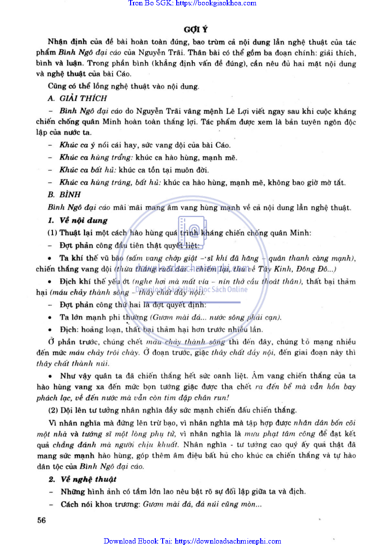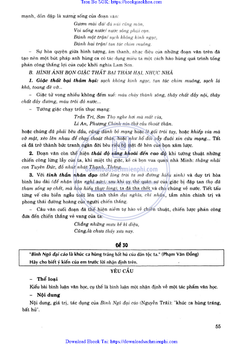 ĐỀ 31. “BÌNH NGÔ ĐẠI CÁO LÀ KHÚC CA HÙNG TRÁNG BẤT HỦ CỦA DÂN TỘC TA”. HÃY CHO BIẾT Ý KIẾN CỦA EM TRƯỚC LỜI NHẬN ĐỊNH TRÊN